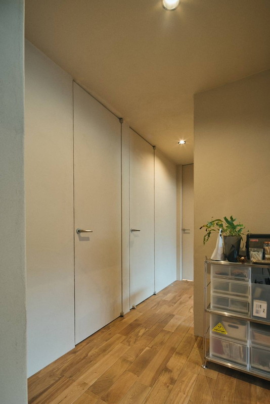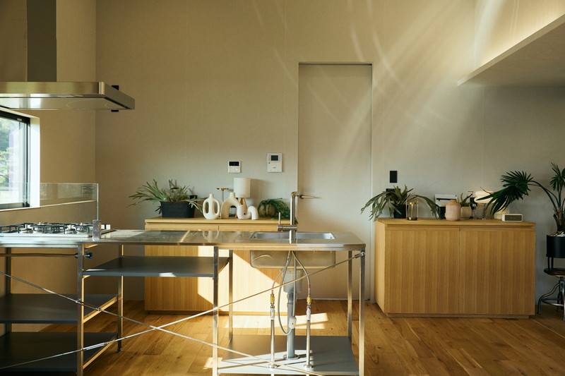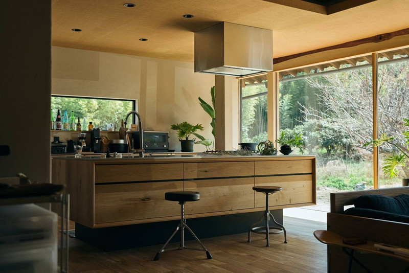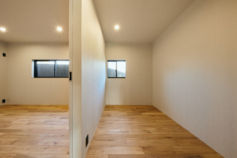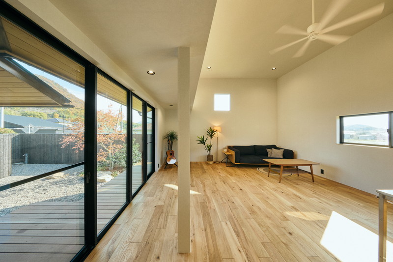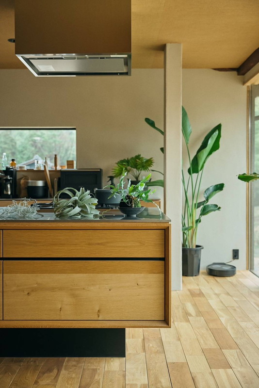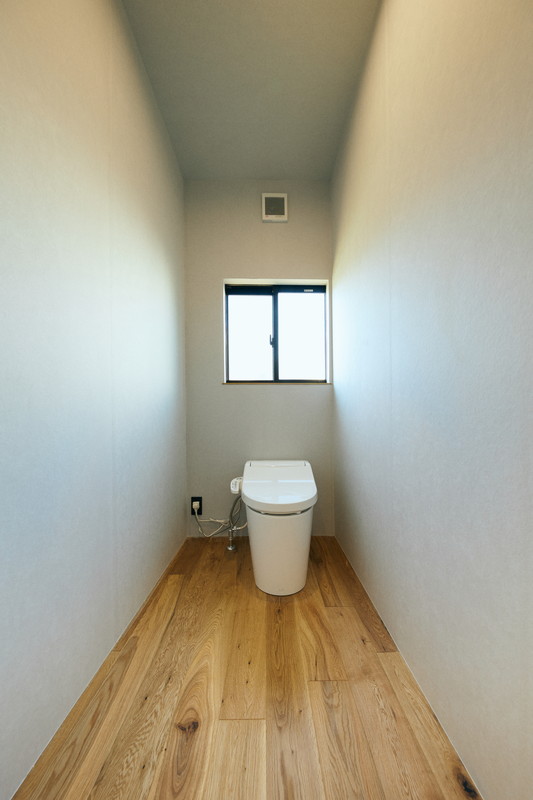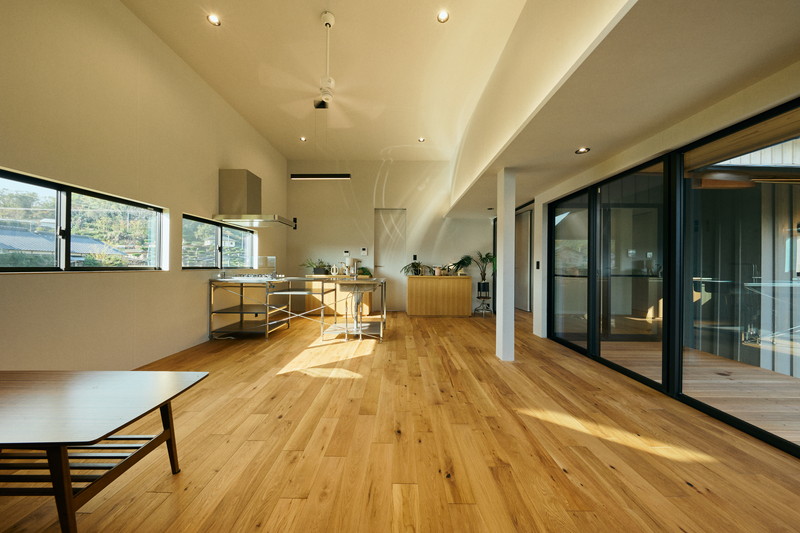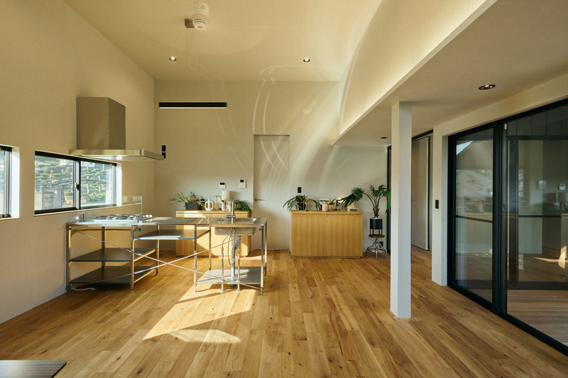 内観は床は楢材、壁は珪藻土、天井は麻を採用し、自然素材が住まいに温かみと落ち着きを与えます。
