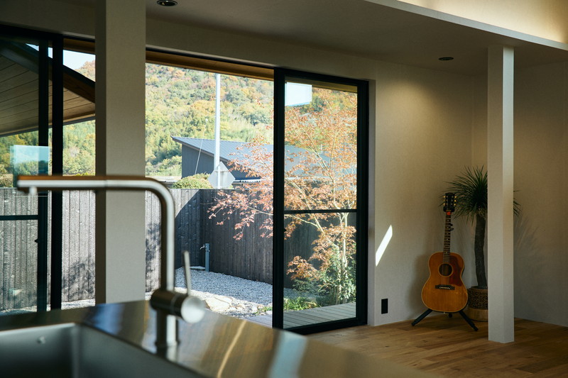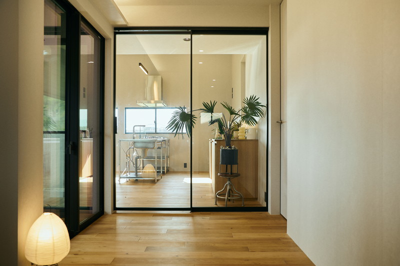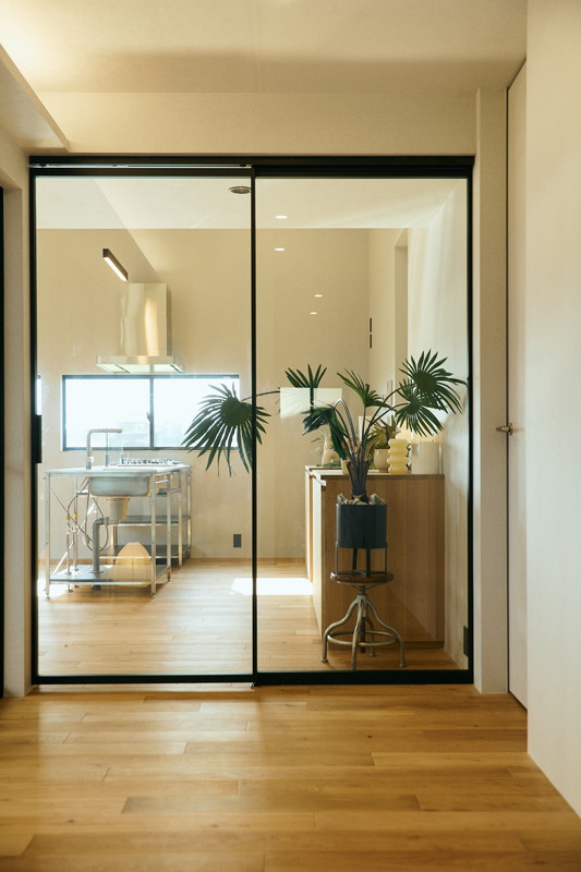 外観は古民家らしい佇まいを残しながら、ガラスや鉄など異材料とのバランスを考えています。